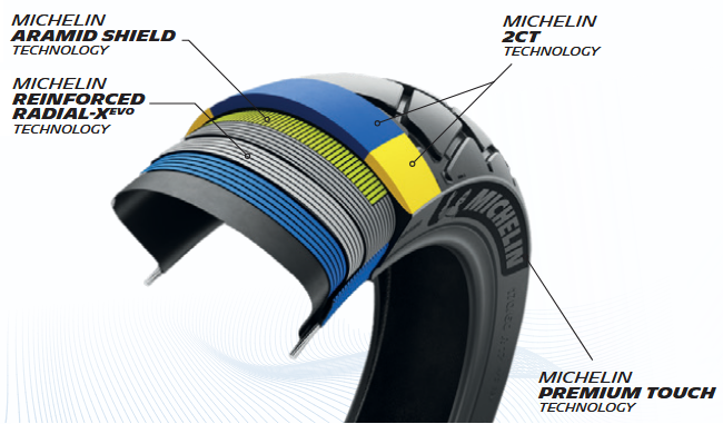Erlebe sicheres Fahrvergnügen bei jedem Wetter – dank neuen, silicabasierten Gummimischungen in Kombination mit der MICHELIN 2CT-Technologie, die außergewöhnlichen Grip auf nassen Straßen und hohe Laufleistung bietet.